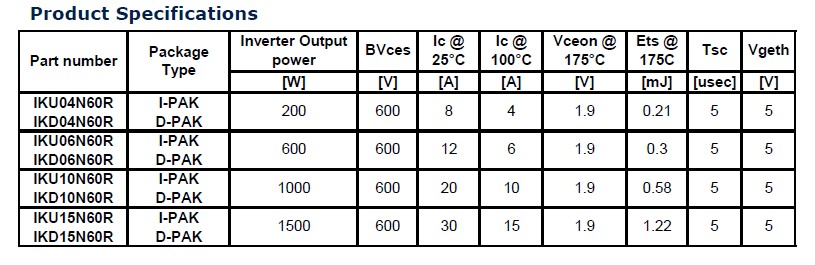 這個是英飛凌IGBT命名的方式,I就是英飛凌。因為英飛凌之前是從西門子獨立出來,所以一些老的產(chǎn)品可能還會沿用這種S開頭的。D是指它的定義,IGBT的類別,K就是這種硬開關(guān)的IGBT,H是軟開關(guān)的IGBT,G就是只有IGBT而沒有二極管的這種IGBT。我們有一款軟開關(guān)的IGBT是專門針對電磁爐的電磁感應(yīng)加熱的應(yīng)用,這一款也是相當(dāng)?shù)牟诲e,有機會大家可以嘗試一下。另外D是它的封裝形式,D是DPARK的封裝,W是TO240,P是TO220,04是它的一個電流等級,這個電流是在100度的情況下測出來的,N是N溝道,60是它的最大電壓,比如60就是600V,R就是指它的第幾代產(chǎn)品或者是哪一種系列,然后R就是逆向?qū)ㄐ虸GBT中的R2、R3。