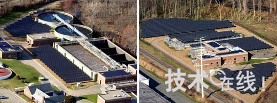 京瓷產(chǎn)品在美國采用的實(shí)例 照片中的是新澤西州莫里斯敦(Morristown)的廢水處理設(shè)施。設(shè)置規(guī)模按照輸出功率計(jì)算約為511kW(太陽能電池模塊2550片),年發(fā)電量約為63萬5800kWh。數(shù)據(jù)由京瓷提供。