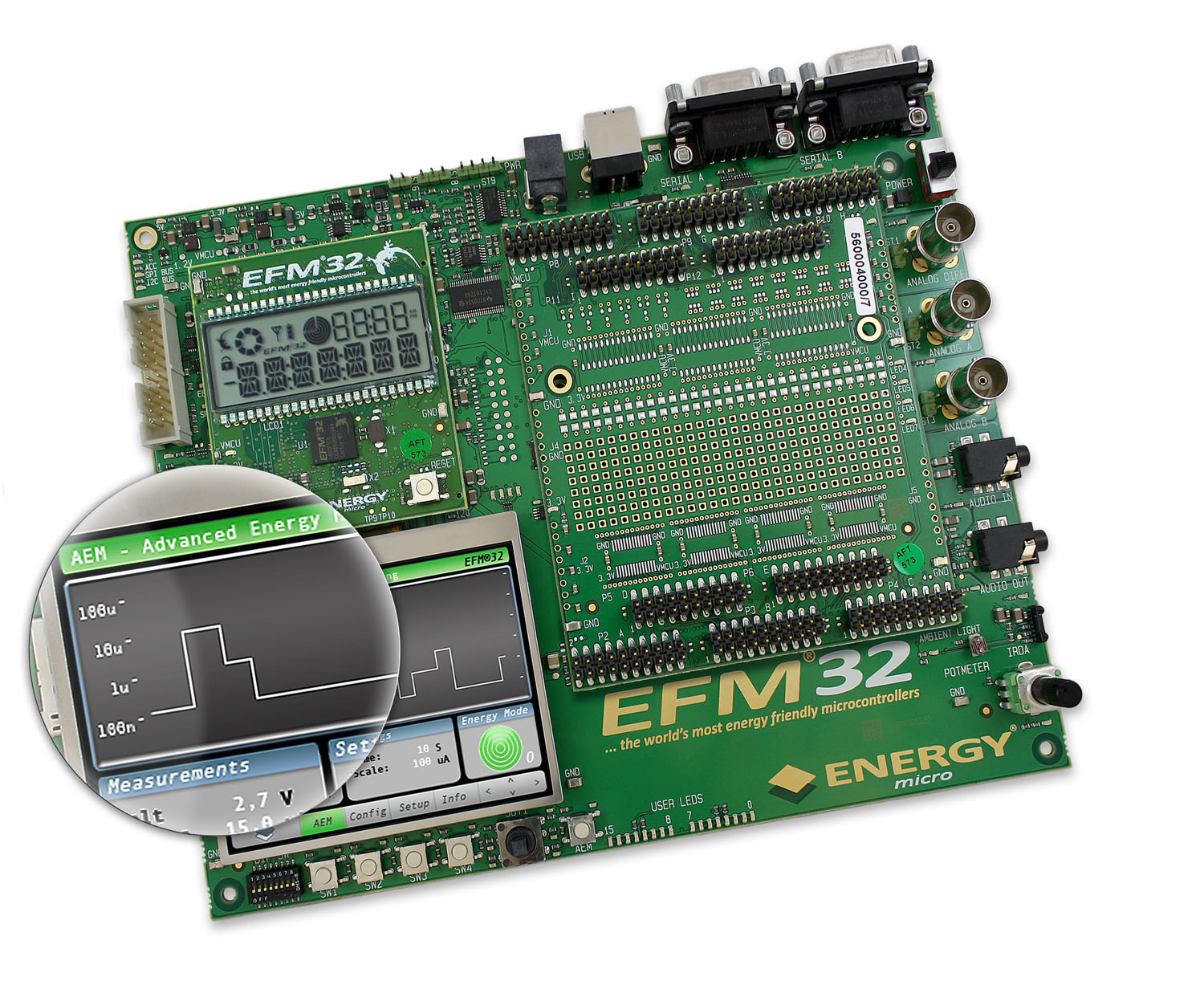 為了幫助設(shè)計(jì)師最好地使用這些能源模式,EFM32的開(kāi)發(fā)工具包還配備了一個(gè)先進(jìn)的能源監(jiān)控系統(tǒng),這個(gè)設(shè)施會(huì)不斷測(cè)量功率軌上的電流。這種測(cè)量方法被集成以準(zhǔn)確地描繪用了一段時(shí)間的功率,使實(shí)際生活中的使用例子被優(yōu)化用于低功率運(yùn)行。