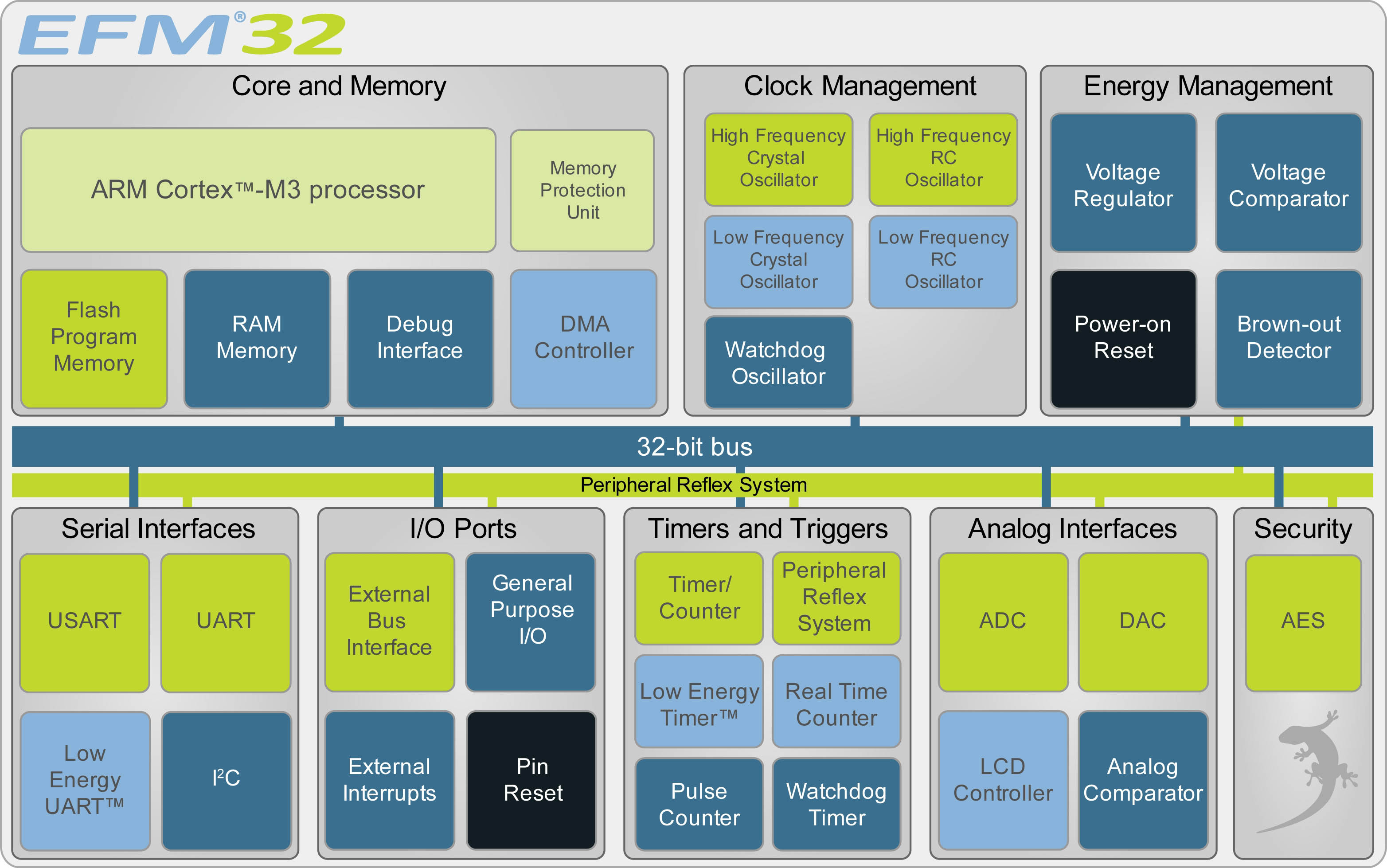盡管有高效的32位處理器內(nèi)核的存在,有許多應(yīng)用功能并不要求它具有全套處理能力,如果在待機(jī)時(shí),即使是最節(jié)能的內(nèi)核也會(huì)使用較少的電源!因此EFM32有一個(gè)互連結(jié)構(gòu)稱為外圍設(shè)備反射系統(tǒng),它使外圍設(shè)備與外圍設(shè)備之間對(duì)話而沒(méi)有來(lái)自ARM內(nèi)核的任何干擾。節(jié)能的微控制器能將功率需求減少到盡可能少,能源敏感的應(yīng)用會(huì)尊重他們的冠名權(quán)。
