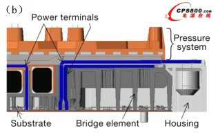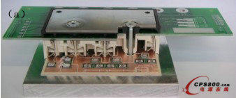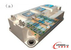 圖3不同功率模塊的剖面圖;(a)標(biāo)準(zhǔn)IGBT半橋模塊;(b)智能功率模塊(IPM),包含半導(dǎo)體芯片、絕緣材料、帶保護(hù)傳感器的驅(qū)動(dòng)器、電流傳感器和散熱器。