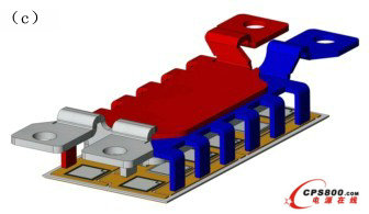 圖5不同壓接系統(tǒng)的對(duì)比:(a)MiniSKiiP壓力接觸;(b)SKiiP橋元件;(c)帶壓接軌的SKiM