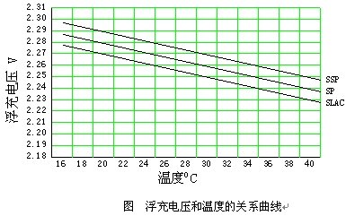 在電源系統(tǒng)中,電池總是在線備用工作的,這樣電池基本處于長期的浮充狀態(tài)中,浮充電壓的選取對電池的長期可靠運行起著至關重要的作用,正如前面看到的,偏高的浮充電壓會造成電池緩慢失水并發(fā)產(chǎn)生熱失控而使電池失效;偏低的浮充電壓會造成電池長期處于充不飽電的狀態(tài),使電池發(fā)生硫酸化而導致電池失效。正確的浮充電壓一般應選在2.23V/單體.,并應隨同電池工作溫度進行相應調(diào)整,由于電池生產(chǎn)廠家的不同,這一參數(shù)會有一些差異,應嚴格按照廠家提供的參數(shù)選取。下圖是某廠家電池浮充電壓同溫度的關系曲線。
