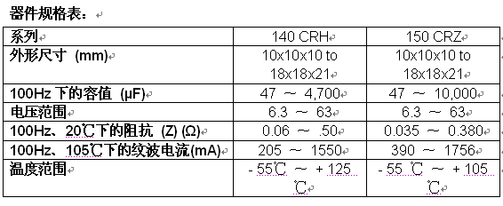 - 150 CRZ電容器具有低至0.035Ω的“Z”阻抗和高達(dá)1756mA的紋波電流