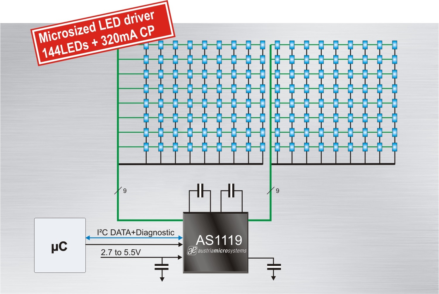 中國——全球領先的通信、工業(yè)、醫(yī)療和汽車領域模擬集成電路設計者及制造商奧地利微電子公司推出最先進、最小尺寸(同樣 PCB空間的通道數(shù))的LED點陣驅(qū)動器AS1119。
