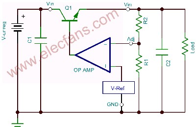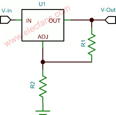 第一個(gè)需要考慮的因素便是確定預(yù)期輸出電壓。最為簡(jiǎn)單的線性穩(wěn)壓器擁有一個(gè)固定的輸出電壓范圍,其由和圖1所示R1/R2網(wǎng)絡(luò)相類似的內(nèi)部連接確定。可調(diào)穩(wěn)壓器可能會(huì)有四個(gè)引腳:Vin、Vout、接地引腳和調(diào)節(jié)引腳。調(diào)節(jié)引腳是用來(lái)調(diào)節(jié)電壓設(shè)置電阻。