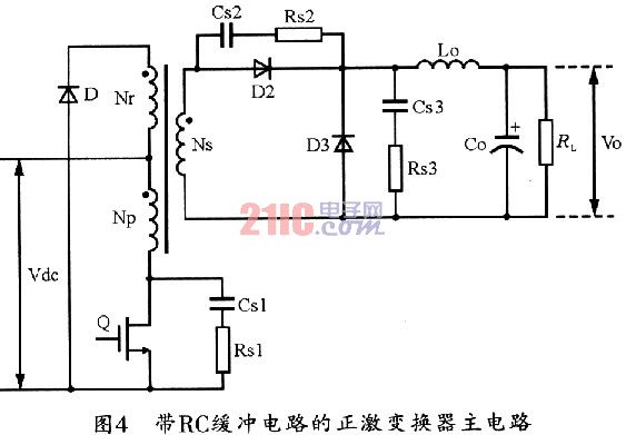 - 帶RC緩沖的正激變換器主電路設計