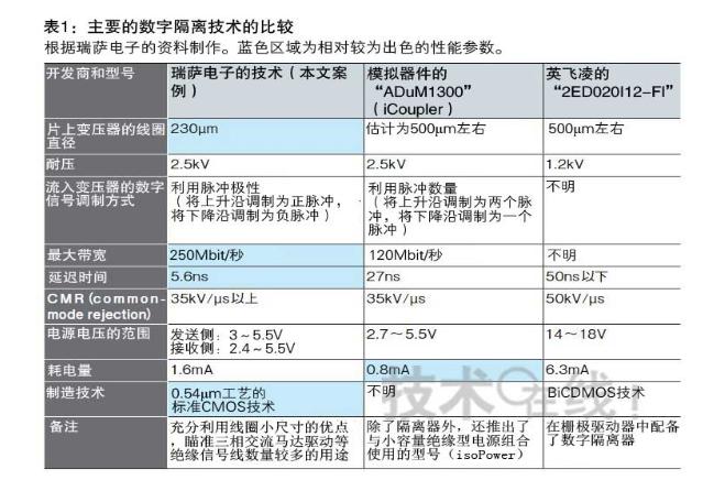 美國模擬器件(ADI)、美國芯科實驗室(Silicon Laboratories)以及德國英飛凌科技(Infineon Technologies)等已經使采用片上變壓器的隔離器實現(xiàn)了實用化。此次技術與這些現(xiàn)有技術的不同之處在于,考慮到要集成在廉價的微控制器上,將變壓器的面積減小到了原來的1/4左右。具體情況是,通過電路技術的改進,將原來需要500μm左右的變壓器直徑降至230μm(表1)。