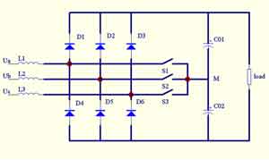 圖4三相三開關(guān)三電平APFC電路拓撲圖