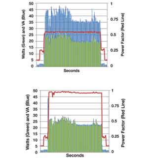 圖1描述了一臺使用兩種不同電源適配器供電的筆記本電腦的功率消耗。即使實(shí)際負(fù)載一樣,從電力線上供應(yīng)的功率也有很大的不同。這些有價(jià)值的信息現(xiàn)在都可以非常容易地獲得。統(tǒng)計(jì)的結(jié)果可以用于調(diào)整設(shè)備的工作行為。在電壓或線路頻率上的微小降落都有可能預(yù)示著某種供電故障,都會使設(shè)備進(jìn)入保護(hù)模式。