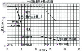 但其變量特性可用來(lái)降低對(duì)伺服電機(jī)的扭矩負(fù)載,故降低其電流及其發(fā)熱,使在需要極低流量的保壓,保壓時(shí)間能夠更長(zhǎng)。這在油研公司的雙排量設(shè)計(jì)發(fā)揮了出來(lái)。從下圖得知,保壓及高壓合模所需的流量低但壓力高,可將變量泵轉(zhuǎn)為小排量,降低在低速時(shí)伺服電機(jī)的大電流產(chǎn)生的發(fā)熱。此功能連全電機(jī)也做不到。如不用雙排量的話,保壓及高壓合模會(huì)超越原排量的壓力流量范圍,但仍在虛線的超載范圍內(nèi),可以作短暫保壓及高壓合模。如鎖模方法是采用機(jī)鉸,高壓合模自然是短暫的。直壓鎖模如不采用單向閥將鎖模力鎖住,便要靠電機(jī)油泵不停地工作來(lái)維持鎖模力。雙排量的小排量能提供長(zhǎng)時(shí)間的保壓及高壓合模。