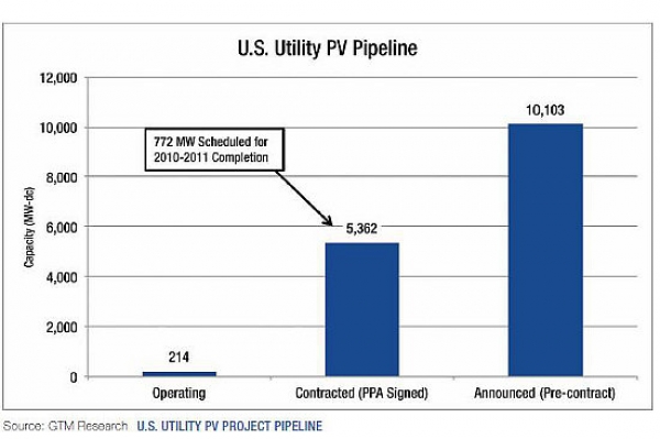 盡管GTM Research公司所公布的一份最新詳細報告中并不認為在未來的幾年內(nèi)美國在其光伏項目領(lǐng)域內(nèi)所公布的20GW具有很大的可信度,但是該報告的作者Shayle Kann明確指出該領(lǐng)域確實將會迎來大幅發(fā)展。據(jù)這份名為《美國光伏電力市場——2015年市場需求、業(yè)內(nèi)從業(yè)者、策略及項目經(jīng)濟分析》的報告稱,光伏電力市場在2010年就已取得10億美元的業(yè)績,并將于2015年將這一數(shù)字提至80億美元。
