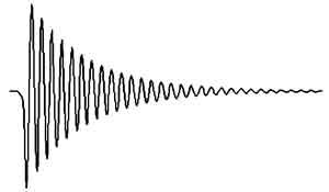 圖1中的電容、電感決定了震蕩頻率f0,電容容量和回路中的損耗決定了衰減的時(shí)間。當(dāng)電容C1=150μf,電感L1=200μh時(shí),理論的震蕩頻率是914Hz,由于實(shí)際電路中存在誤差,實(shí)測值約800Hz,衰減的時(shí)間超過20ms。