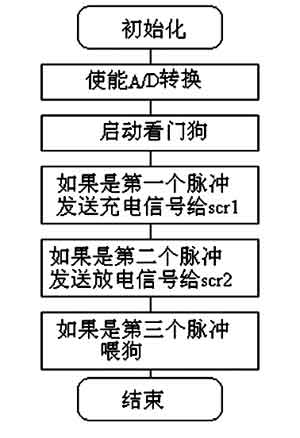 圖5是主程序流程圖。由于電路中的可控硅觸發(fā)時(shí)間要求嚴(yán)格,所以,程序中分別使用了定時(shí)器T0作為SCR1充電的觸發(fā)定時(shí)信號,定時(shí)器T1作為SCR2放電時(shí)間的定時(shí)信號。