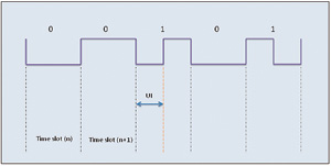 S/PDIF協(xié)議——如上文所述,它是一種單線串行接口,時(shí)鐘嵌入數(shù)據(jù)之中。傳輸?shù)臄?shù)據(jù)采用雙相標(biāo)記編碼。時(shí)鐘和幀同步信號(hào)在接收器端與雙相解碼數(shù)據(jù)流一同恢復(fù)。數(shù)據(jù)流中的每個(gè)數(shù)據(jù)位都有一個(gè)時(shí)隙。時(shí)隙以一個(gè)躍遷開(kāi)始,并以一個(gè)躍遷結(jié)束。如果傳輸?shù)臄?shù)據(jù)位是“1”,則時(shí)隙中間還會(huì)增加一個(gè)躍遷。數(shù)據(jù)位“0”則不需要額外躍遷,躍遷之間的最短間隔稱為單位間隔(UI)。