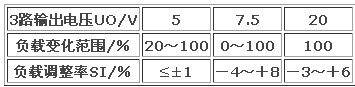 2)多路輸出,穩(wěn)壓性能好,在最壞的情況下,各路輸出的負載調(diào)整率指標見表1,