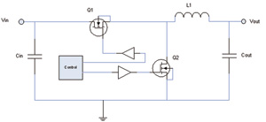 盡管本文所討論的原理適用于廣泛的電源設計,但我們在此只關注直流到直流的轉(zhuǎn)換器,因為它的應用相當廣泛,幾乎每一位硬件工程師都會接觸到與它相關的工作,說不定什么時候就必須設計一個電源轉(zhuǎn)換器。本文中我們將考慮與低電磁干擾設計相關的兩種常見的折中方案;熱性能、電磁干擾以及與PCB布局和電磁干擾相關的方案尺寸等。文中我們將使用一個簡單的降壓轉(zhuǎn)換器做例子,如圖1所示。