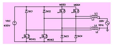 圖22 采用2個(gè)sic二極管、4個(gè)si二極管和分別輸出方式的npc逆變器拓?fù)?/div>