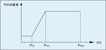 圖4顯示了非導通時間調制的基本原理。當負載改變時,開關頻率將連續(xù)降低或增加,開關頻率與輸出功率的關系如圖5所示。低負載或空載時這種連續(xù)調變降低開關頻率的方式除了可以有效降低能量損失外,還可以避免前兩種方法中輸出電壓突升或突降的問題。