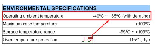 一般溫度操作可分成商規(guī)(0℃~+60℃)、工規(guī)(-25℃~+71℃)、軍規(guī)(-55℃~+85℃)等,在選擇DC/DC 電源模塊時需考慮實際系統(tǒng)操作溫度范圍,選用合適的溫度等級。