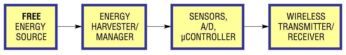 免費(fèi)能源 能量收集器/管理器 傳感器、A/D、微控制器 無(wú)線發(fā)送器 / 接收器