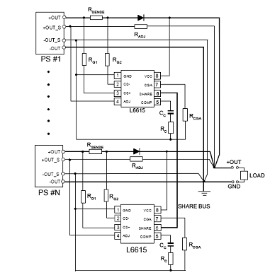 在兩組或多組電源模塊輸出回路中,各串接二極管后并聯(lián)連接,使得當(dāng)單一模塊產(chǎn)生異常時,其它模塊可接續(xù)提供電源,維持系統(tǒng)工常運作。其中二極管應(yīng)選擇低順向?qū)妷航?Low Vf),以降低導(dǎo)通損失。