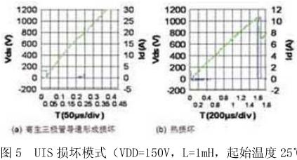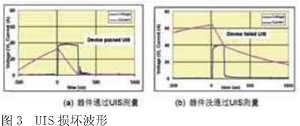 圖3顯示了UIS工作條件下,器件雪崩損壞以及器件沒有損壞的狀態(tài)。