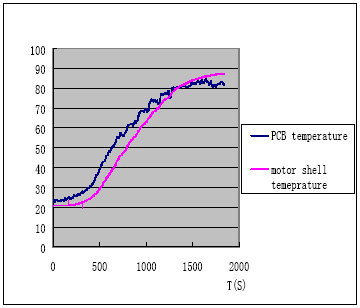 圖4:磨制豆?jié){時PCB板子和馬達外殼的溫度
