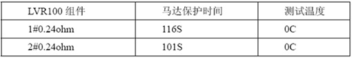 其次選取典型值電阻的LVR100和功率電阻集成的組件,來進行0C/25C溫度下榨水果馬達堵轉(zhuǎn)保護時間,下表2為馬達的保護時間。