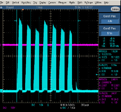 圖7:PPTC組件在多功能豆?jié){機馬達堵轉(zhuǎn)保護波形