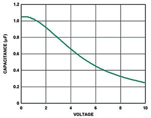 其中,CBIAS是工作電壓下的標稱電容;TVAR是溫度范圍內(nèi)最差情況下的電容變化率(百分率);TOL是最差情況下的元件容差(百分率)。