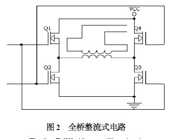 (2) 全橋整流式電路。圖2 所示為全橋整流式電路。該方案采用了4 個MOS 管,工作時對管同時導通,半周期內(nèi)Q1、Q3 導通,Q2、Q4 截止,然后Q2、Q4 導通,Q1、Q3 截止。這樣的工作方式使每半周期都有2 個MOS 管來分壓,對MOS管的耐壓要求就降低了,適用于高壓場合,但由于使用了4個MOS 管,使得損耗功率增加,開關(guān)損耗同時增加??紤]到農(nóng)業(yè)機械一般功率較大,采用該方案必然降低電能利用率,導致大量的能耗損失。