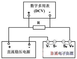 啟動(dòng)直流穩(wěn)壓穩(wěn)流電源輸出,直流電子負(fù)載啟動(dòng)加載,直流電子負(fù)載的電流設(shè)置值為I1,流過分流器R的電流實(shí)際值為I0(I0=U/R),直流電子負(fù)載的電流測量值為I2。