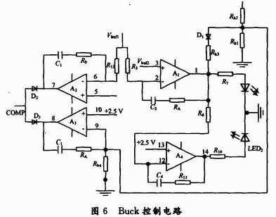 后級Buck控制電路能滿足三段式充電的要求,Buck控制電路,如圖6所示。