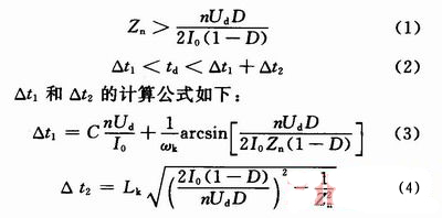 式中:Zn為特性阻抗,;D為開關(guān)管Q1的占空比;C為開關(guān)管Q1和Q2的寄生電容;ωk為諧振角頻率;Lk為變壓器初級漏感;I0為負(fù)載總電流;td為死區(qū)時間;n為變壓器初、次級匝比。