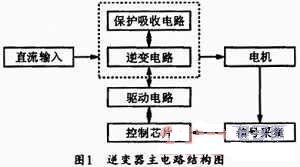 圖1為典型的逆變器結(jié)構(gòu)原理圖。它由三部分組成:逆變電路、驅(qū)動保護(hù)電路、控制與信號采集電路。