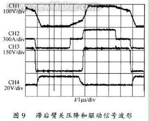 圖9為滯后臂管壓降和其驅(qū)動(dòng)脈沖的波形。