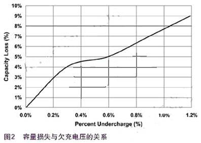 2).避免充電至容量的100%.選擇一個較低的浮動電壓可以做到這一點。降低浮動電壓將提高周期壽命和服務(wù)壽命,代價是降低電池容量。浮動電壓降低100mV至300mV可以將周期壽命延長2至5倍或更長。與其他化學(xué)材料相比,鋰離子鈷化學(xué)材料對較高浮動電壓更敏感。磷酸鋰離子電池一般比更常見的鋰離子電池的浮動電壓低。