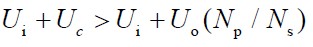 當(dāng)開關(guān)管 Q 關(guān)閉時(shí),初級電感 Lp 中的能量將轉(zhuǎn)移到次級輸出,但漏感Ll 中的能量將不能傳遞到次級,轉(zhuǎn)移到箝位電路的電容Cc ,然后這部分能量被箝位電阻 R c消耗。電容c C上的電壓在開關(guān)管關(guān)斷的一瞬間沖上去,然后一直處于放電狀態(tài)。電容 C c的值應(yīng)取得足夠大以保證其在吸收漏感能量和釋放能量時(shí)自身兩端電壓uc( t )紋波足夠小。因此電容Cc 兩端電壓uc( t )為基本為恒定值Uc 。同時(shí)電容 Cc 上的電壓不能低于次級到初級的反射電壓Uo × (Np / Ns ),否則開關(guān)管關(guān)斷期間,二極管導(dǎo)通,RCD 箝位電路將成為該變換器的一路負(fù)載。因此開關(guān)管承受的尖峰電壓被箝位為: