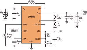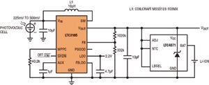 串聯(lián)連接的高壓光伏電池組能提供充足的功率,但單節(jié)光伏電池解決方案卻很少見,因為單節(jié)光伏電池在有負載情況下產(chǎn)生的電壓很低,從這么低的電壓難以產(chǎn)生有用的電源軌。幾乎沒有升壓型轉(zhuǎn)換器能從電壓很低、阻抗相對較高的單節(jié)光伏電池產(chǎn)生輸出。不過,LTC3105是專門為應(yīng)對這類挑戰(zhàn)而設(shè)計。該器件具有超低的250mV啟動電壓和可編程最大功率點控制,能從富有挑戰(zhàn)性的光伏電源產(chǎn)生大多數(shù)應(yīng)用所需的典型電壓軌(1.8~5V)。