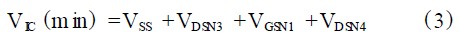 同時(shí)為滿足該電路低功耗的要求,應(yīng)盡可能使電路中增強(qiáng)性管工作在亞閾值區(qū)。如圖3所示,基于襯偏效應(yīng)和源極電位的升高,MN5管工作于亞閾值區(qū)。