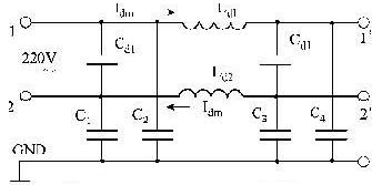 上述無源EMI濾波器是互易的,它既能抑制電子鎮(zhèn)流器的電磁干擾送入電網(wǎng),又能抑制電網(wǎng)內(nèi)的電磁干擾進(jìn)入電子鎮(zhèn)流器中。