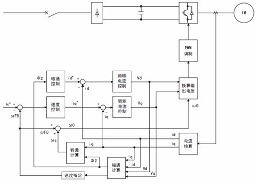 在前者控制方式下增加了反饋環(huán)節(jié),矢量閉環(huán)變頻調(diào)速是一種最為理想的控制方式,他類同于伺服、直流閉環(huán)調(diào)速,但性價(jià)比又大大優(yōu)于兩者。該方案具有以下優(yōu)點(diǎn):可以從零轉(zhuǎn)速起進(jìn)行速度控制,即甚低速亦能運(yùn)行,調(diào)速范圍可達(dá)100:1或1000:1;動(dòng)態(tài)響應(yīng)快,轉(zhuǎn)速精度高;加速度特性好,抗負(fù)載突變能力強(qiáng)。其缺點(diǎn)是:價(jià)格較貴,安裝速度傳感器必須與電機(jī)同軸,且增加了反饋環(huán)節(jié),這些都給安裝維護(hù)增加了一定技術(shù)難度。因此對(duì)于轉(zhuǎn)速精度要求不是特別高,負(fù)載變化不是十分劇烈的場(chǎng)合,建議選用開環(huán)矢量變頻調(diào)速系統(tǒng)為好。圖2為矢量控制變頻調(diào)速系統(tǒng)控制框圖