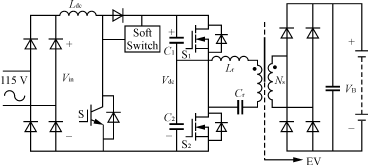 感應耦合充電變換器的高頻化可以減小感應耦合器及車載濾波元件的體積重量,實現(xiàn)電源系統(tǒng)的小型化。但隨著頻率的不斷增高,采用硬開關工作方式的變換器,其開關損耗將大大增高,降低了變換器效率。因而,為了實現(xiàn)更高頻率、更高功率級的充電,必須保證主開關器件的軟開關,減小開關損耗。