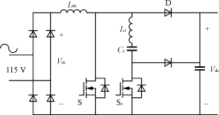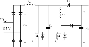 對于1.5kW功率等級,輸入電流有效值為15A,平均開關電流是13A,峰值電流為22A,需要電流定額至少為30A的開關器件。盡管這個方案提供了比較簡單的單級功率變換,但也存在一些缺陷,如半導體器件承受的電壓應力較高、輸出電壓調節(jié)性能差,輸出電流紋波大。
