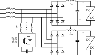 有源濾波器定額約為充電站額定功率定額的20%。在整流端一般采用直流側電感來提高整流器的功率因數(shù),可以選用串聯(lián)或并聯(lián)方式的有源濾波方案。