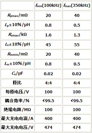 根據(jù)SAE J-1773標準給出的感應耦合器等效電路,連接電纜和電池負載的特性,可以得出感應耦合充電變換器應當滿足以下設計標準。