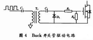 為了減小DB的反向恢復(fù)電流,進一步減少存儲進驅(qū)動電源的電荷量,本文中的DB采用快速恢復(fù)二極管。Buck電路開關(guān)管的驅(qū)動電路,如圖4所示。