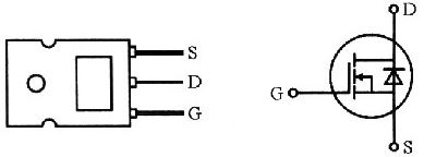圖7所示為IRFP360的外型及表示符號。它的特點,一是具有隔離式的中心裝配孔,并有重復性的雪崩定額;二是漏源之間并聯(lián)有反向二極管,其電壓變化率定額很大而且驅動電路比較簡單,此外,同型號的管子并聯(lián)也很容易。然而,由于MOS管的柵極輸人阻抗較高,容易產生較高的感應電壓,從而導致柵極易擊穿,所以在維護中應特別注意。