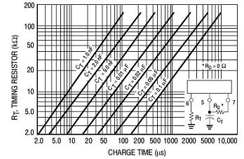 直流電源s V 從腳15 接入后分兩路,一路加到或非門;另一路送到基準(zhǔn)電壓穩(wěn)壓器的輸入端,產(chǎn)生穩(wěn)定的+5V 基準(zhǔn)電壓。+5V 再送到內(nèi)部(或外部)電路的其它元器件作為電源。振蕩器腳5 須外接電容T G 腳6 須外接電阻RT。振蕩器頻率f 由外接電阻 RT 和電容 CT 決定, f = 1.18/RT CT ??梢愿鶕?jù)廠家的一個圖查出。如圖5: